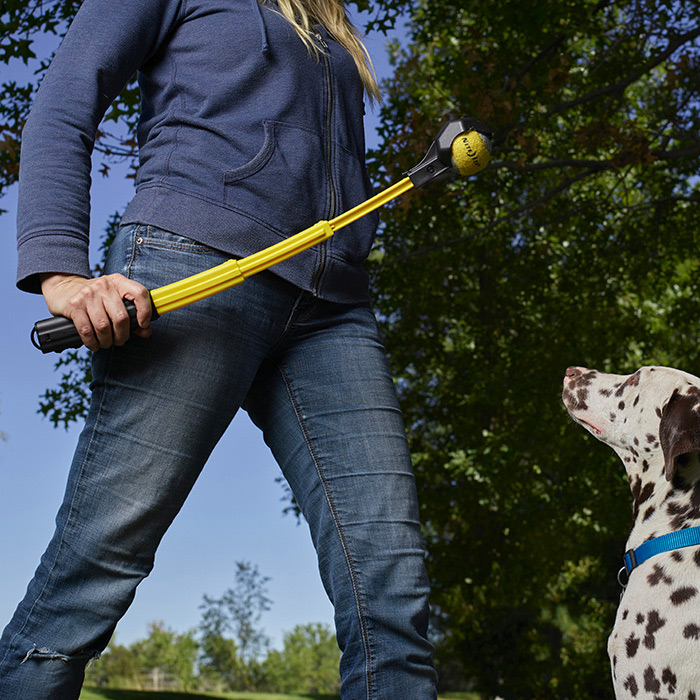 Collapsible handle is perfect for convenient carrying and storage while extending to maximize leverage for effortless ball throwing