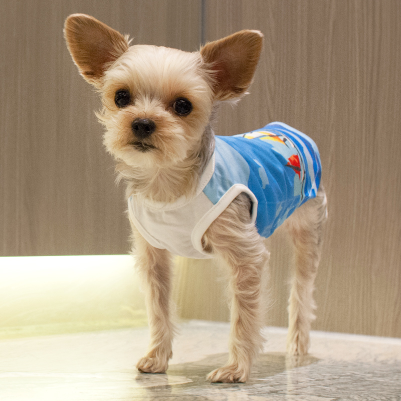 Tank designed with beautiful sailboats and ocean. Leash hole.