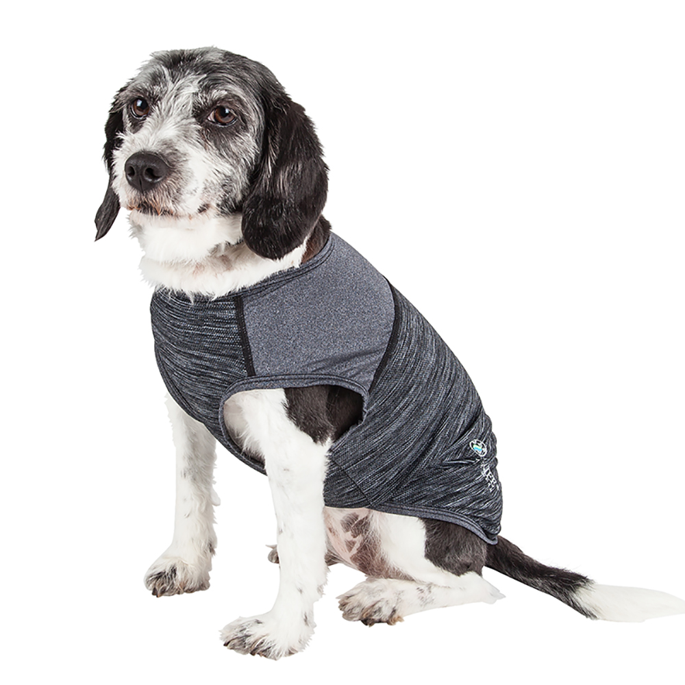 The Pet Life® ACTIVE 'Aero-Pawlse' Heathered Tank Top is an entire system comprised of Ultra-Lightweight, Breathable and well Ventilated specially engineered fabrics that fuse together to help enhance Mobility and Breathability. Features 4-Way Stretch Construction that moves better in every direction with a customized fit that's further than next to skin or Fur without the squeeze and won't bunch up. The top layer features a specially formulated stretchy Ultra-Elastic and Breathable Micro-fiber and the bottom portion features specially formulated perforated and breathable panels that offer strategic ventilation. Both combined soft-touch flexible fabrics feature Quick-Drying properties that repel body moisture or sweat while offering Anti-Odor technology that assists with odor causing microbes. The Aero-Pawlse Tank is also UV Protectant against the suns harmful rays and fitted perfectly to help assist in containment of shedded hairs. Design features Dual Reinforced stitching at every seam for longevity with a Pull-Over design for easy on and off access and Reflective-Taping for added night visibility. Machine Washable. This style is part of our Pet Life® Activewear Collection. Available in Multiple Sizes and Colors. SIZING SPECIFICATIONS: EXTRA SMALL: Back: 9.63" Chest: 12.75" Neck: 9.5" SMALL: Back: 10.63" Chest: 15.75" Neck: 12.5" MEDIUM: Back: 14.63" Chest: 19.75" Neck: 14" LARGE: Back: 18.63" Chest: 24.75" Neck: 16.5" EXTRA LARGE: Back: 21.63" Chest: 29.75" Neck: 19.5"