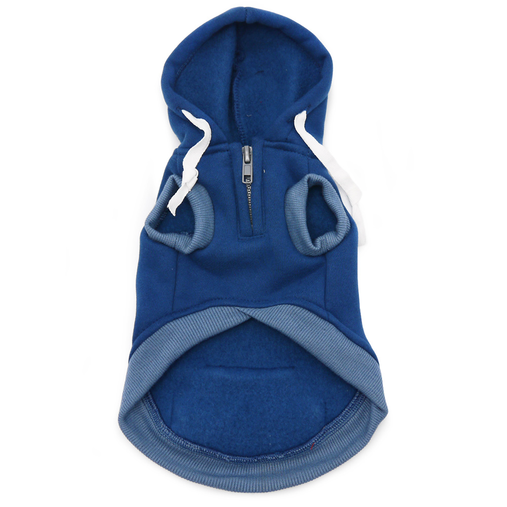 Basic stretchable sweatshirt with short sleeves, drawstring hood, zipper down collar, and leash hole.