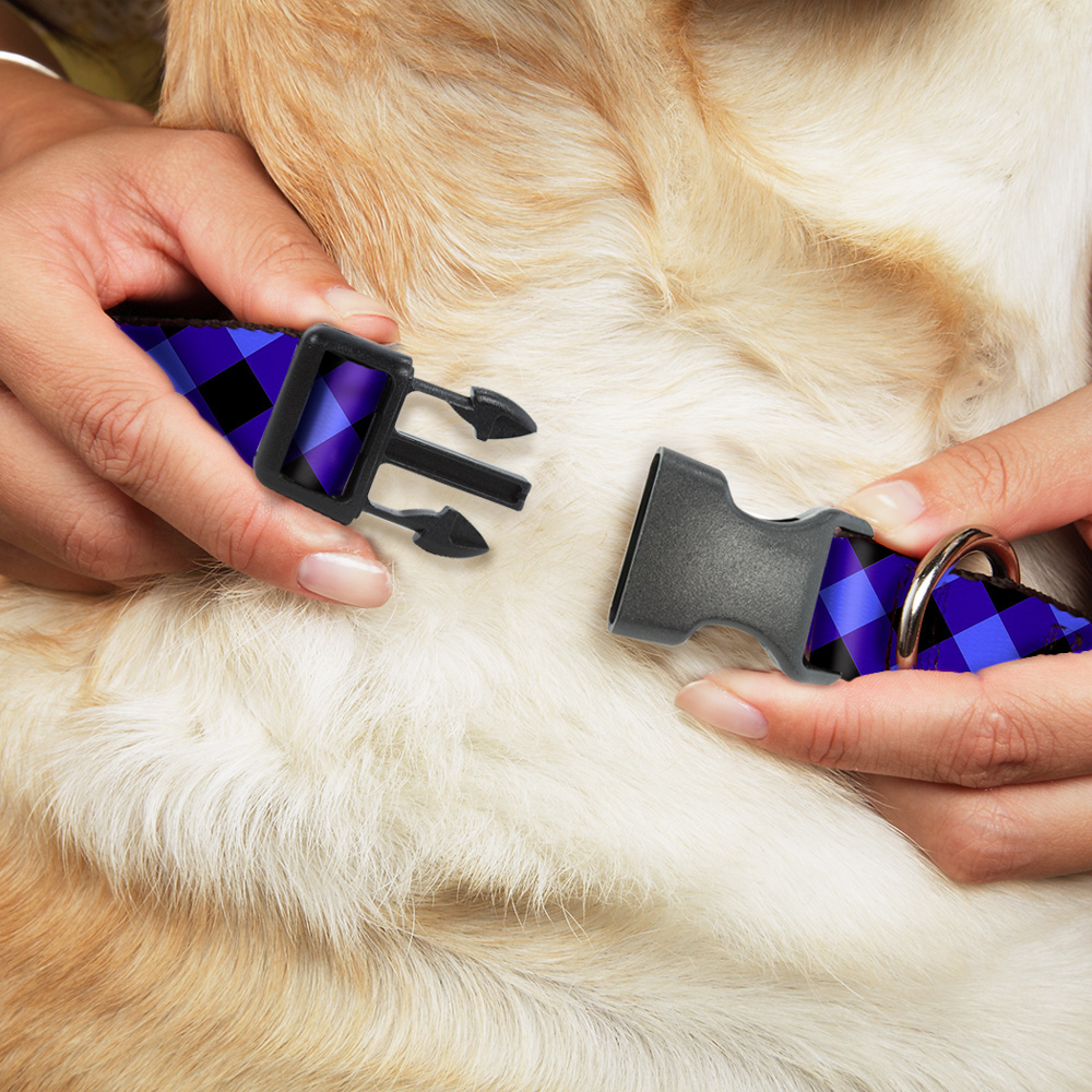 Plastic Clip Collar - Diagonal Buffalo Plaid Black/Blue
