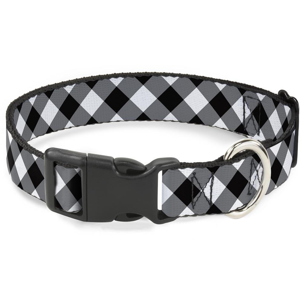 Plastic Clip Collar - Diagonal Buffalo Plaid Black/White