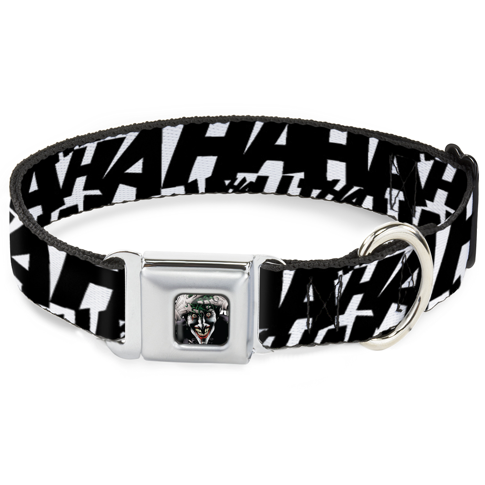 Joker The Killing Joke Holding Head Pose CLOSE-UP Full Color Seatbelt Buckle Collar - Joker's HA HA HA Repeat White/Black
