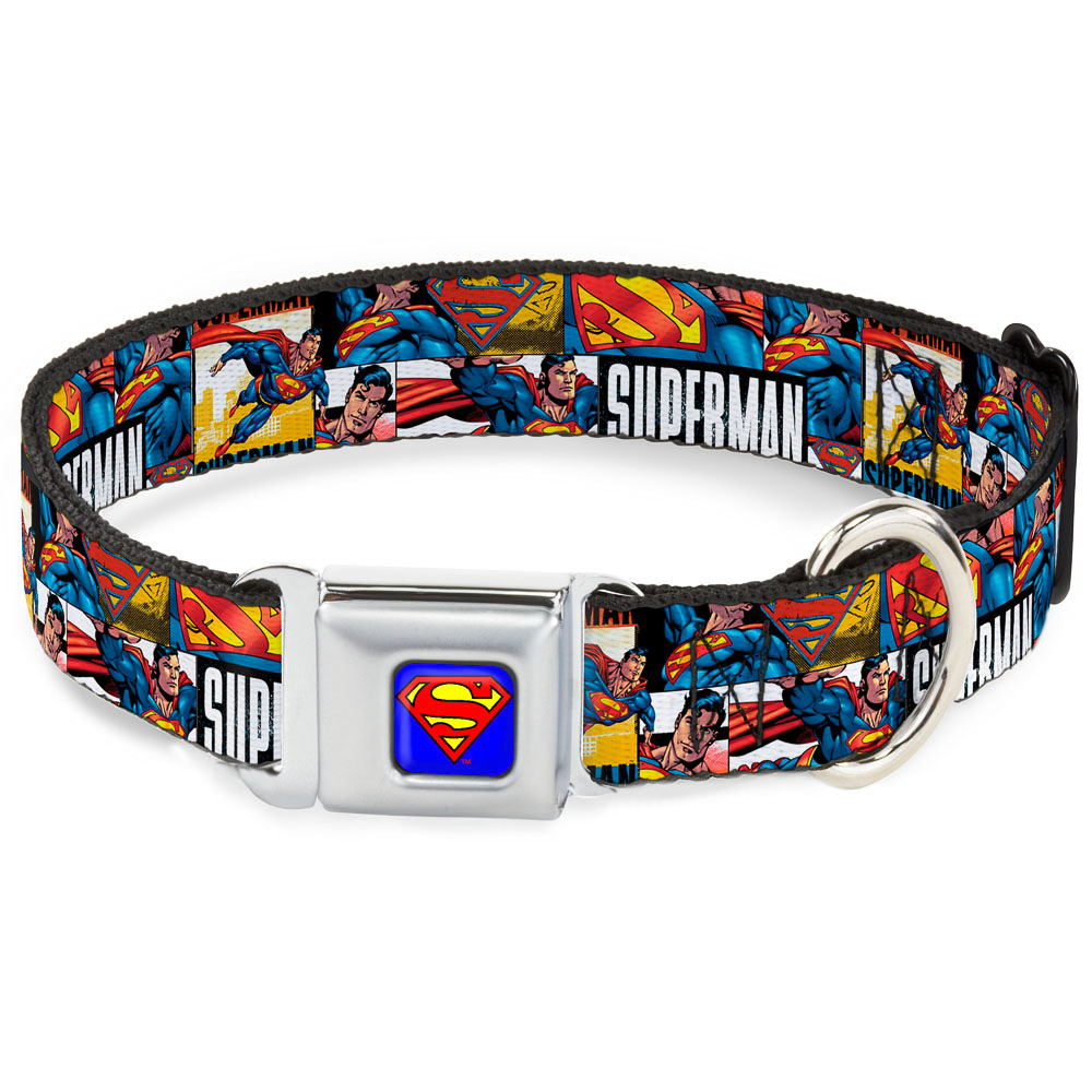 Superman Blue Seatbelt Buckle Collar - SUPERMAN Action Blocks White