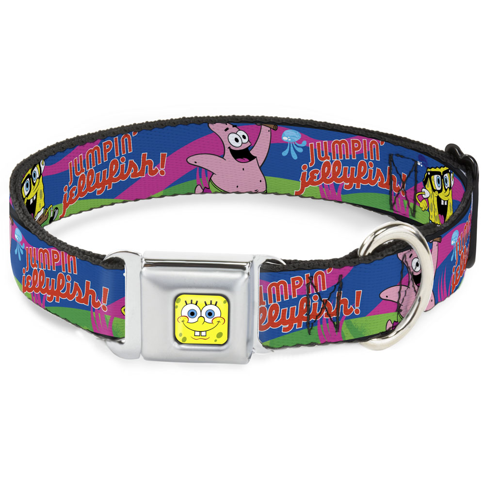 SpongeBob Face CLOSE-UP Full Color Seatbelt Buckle Collar - Nerd SpongeBob & Patrick Starfish Running JUMPIN' JELLYFISH! Multi Color/Red