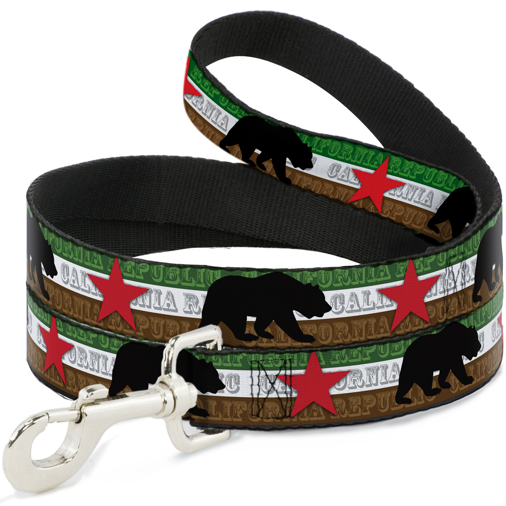 Dog Leash - Cali Bear Silhouette & Star/CALIFORNIA REPUBLIC Green/White/Brown/Black/Red