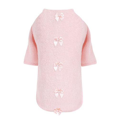 The Dainty Bow Dog Sweater by Hello Doggie features satin bows adorned with a Pearl and made from light soft wool fabric. Our sweater collection is sure to keep your baby warm and stylish, pairs well with any Hello Doggie coat for a complete look. These sweaters are easy to care for, spot clean or hand wash, no bleach or softener. Air dry or tumble on low.