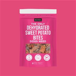 You may say "po-tay-to" and we say "po-tah-to", but what we can all agree on is that these vegan sweet potato bites have certainly earned their bravado. The powerhouse nutrients & antioxidants in these treats are known to help promote healthy skin & coat, gut health, eye function and digestion. While we have all the seals, certifications, and promises as the other guys, what truly makes our Sweet Potato Bites different is this: our proprietary dehydration process preserves the nutritional value, vibrant orange color and organic smell of our treats making our sweet potatoes closer to nature than the other brands with nothing added, nothing removed & as nutrient dense as physically possible.
