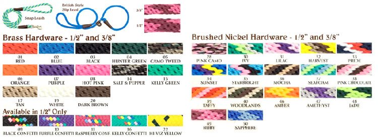 Our soft and pliable Diamond Braid has an adjustable leather slide with the "Alta Qualitas" embossed logo. The rings are bright brass, the same used in our Show Slip Lead. The Martingale Show Lead is 1/8" thick and 40" long. Small - 8" neckband Medium - 10" neckband Large - 12 " neckband