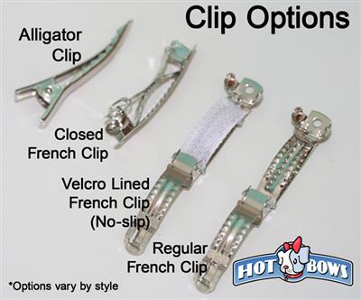 No-Slip French Clips are easy to open; an added piece of Velcro prevents the clip from slipping off the straighter hair (i.e. Yorkie or Maltese) ***Recommended for children.