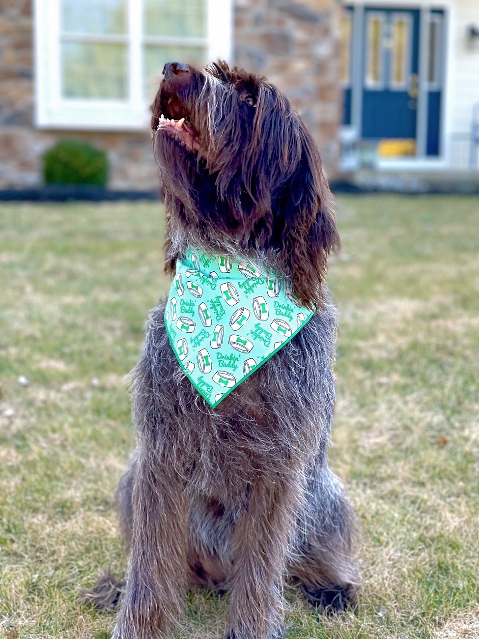 Cool Saying "Drinkin Buddy" on High Quality Cotton & Matching Green Rolled Hem - LOVE THIS ONE!