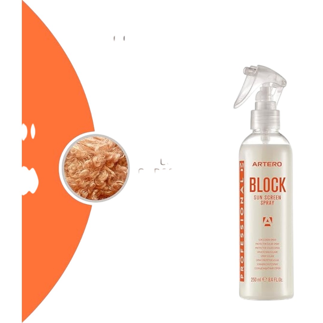 Artero Block Sunscreen Hair Spray, safeguards of dog's hair cuticle from the harmful effects of ultraviolet and infrared rays.