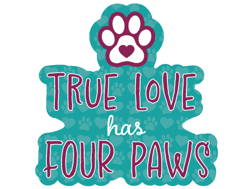 The love of a pet is the truest love of all from head to paws. True Love Has Four Paws 3-inch Sticker.