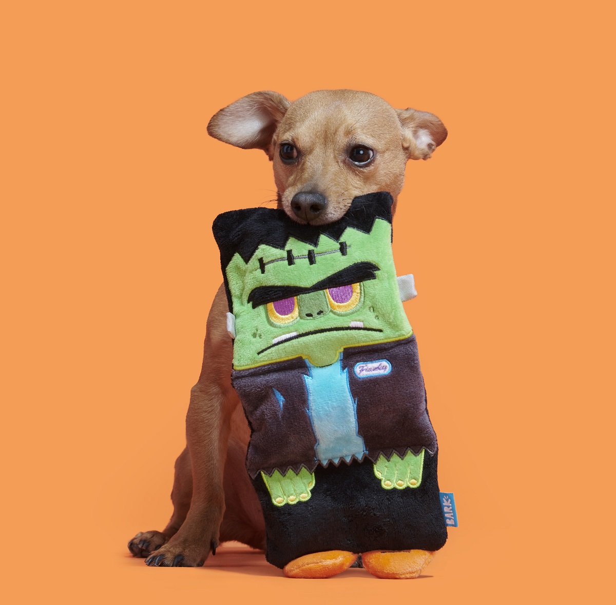 Don't mind Cranky Frankie—he just reanimated up on the wrong side of the bed and is looking for a new furrrriennnd. This Frankenstein's monster dog toy was built for squeaker seekers! Made with crazy crinkle and six squeakers your dog will think, "It's aliiiive!"