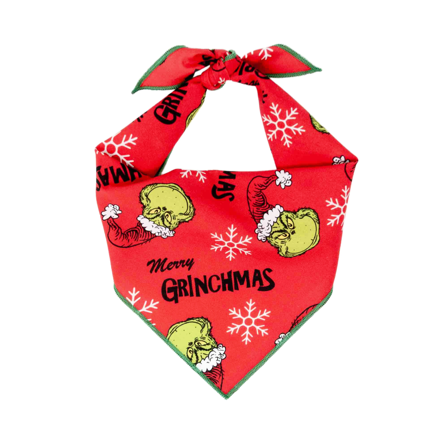 Crisp Red Cotton Fabric with Green Trim | Fun Grinch Print
