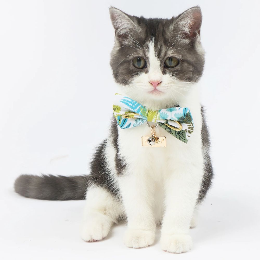 The Touchcat ® Tropical Patterned Designer Cat Collar with Bow features a fashionable accented bowtie and charm with an attractive Floral-Leaf pattern. This premium cat collar is made with a soft polyester and nylon blended material that's soft and comfortable around the neck area with durable buckles and adjustable straps for a customized fit. Available in Multiple Sizes.