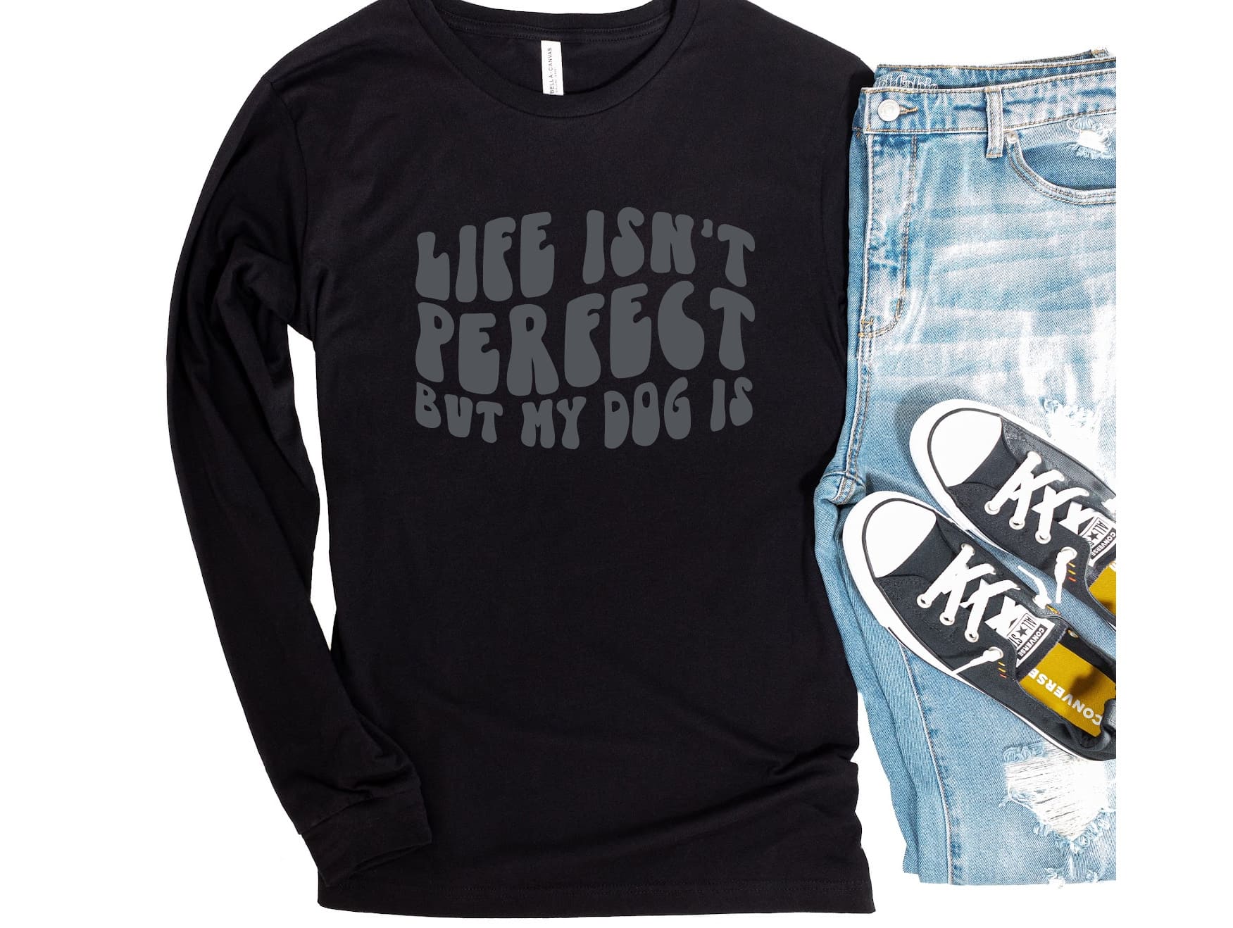 People Tee | People Shirts | Printed Tshirt | Human Dog Gear | Dog Lover | Long Sleeve | LIFE ISN'T PERFECT BUT MY DOG IS