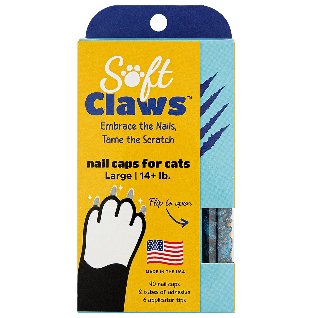 Soft Claws Blue Sparkle Feline Large nail caps for cats are the original and only USA-made nail caps.
