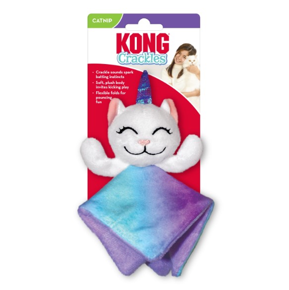 Special FeaturesCrackle sounds spark batting instincts Soft, plush body invites kicking play Flexible folds for pouncing fun Soft plush Caticorn body ideal for cuddle time KONG Premium North American catnip extends playtime