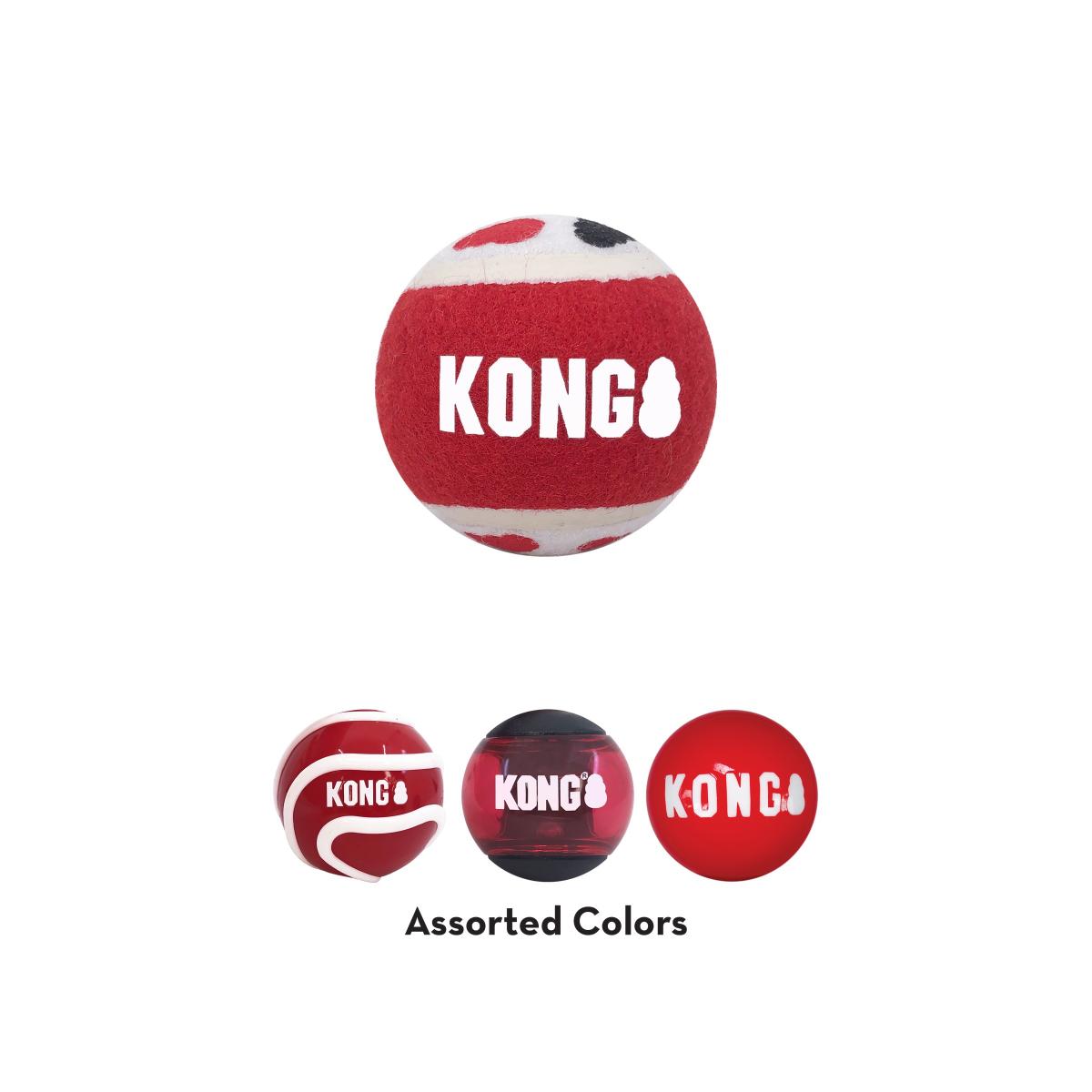 Special Features4 different balls for fetching variety Durable construction for long-lasting fun Satisfies instincts to chase and retrieve Some squeak, some do not—for fetching volume control Felt on KONG Signature Sport Ball is gentler on teeth and gums than regular tennis balls