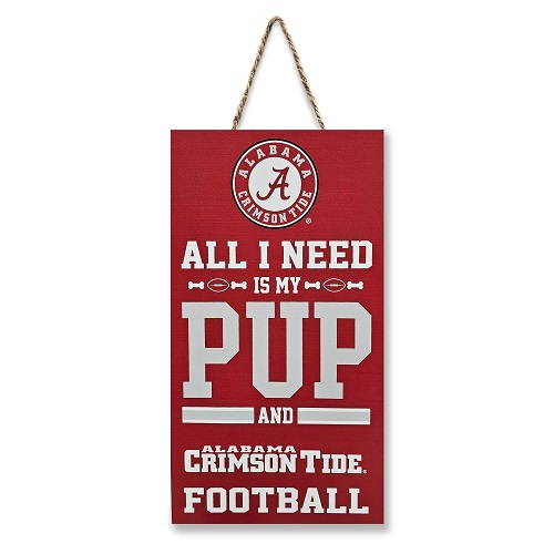 ALABAMA "ALL I NEED IS MY PUP AND FOOTBALL" SIGN