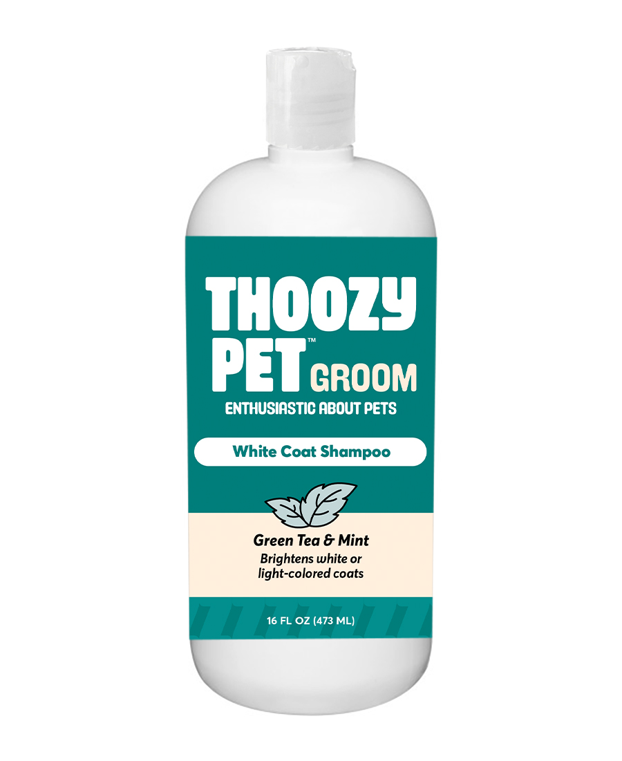 ThoozyPet White Coat Shampoo in Green Tea & Mint (16oz) is specially formulated to brighten and enhance white or light-colored coats, leaving them looking fresh and vibrant. Safe for both dogs and cats when used as directed, this cruelty-free, dye-free, and SLS-free formula is environmentally friendly, providing a gentle and effective way to maintain your pet’s beautiful coat.