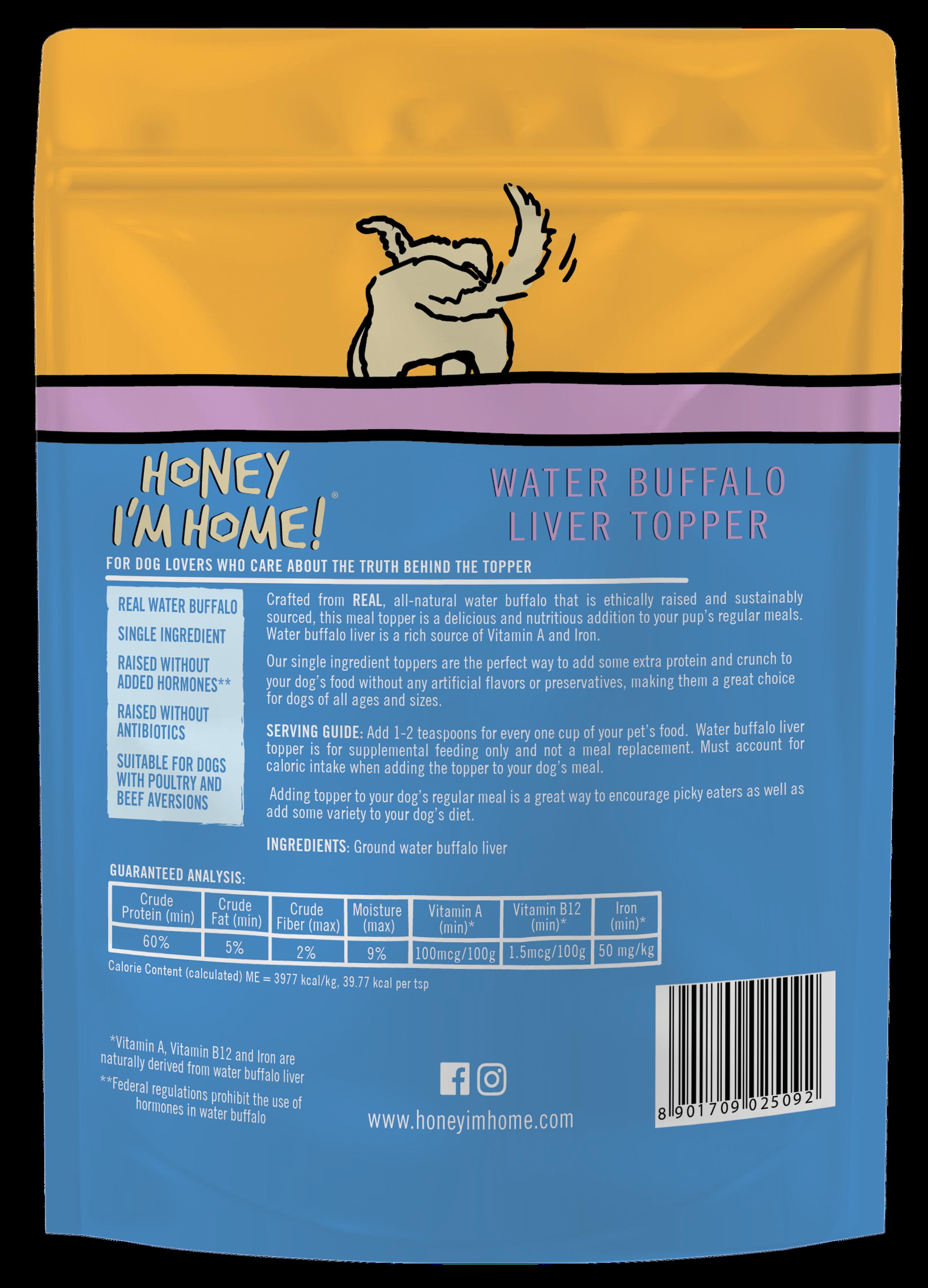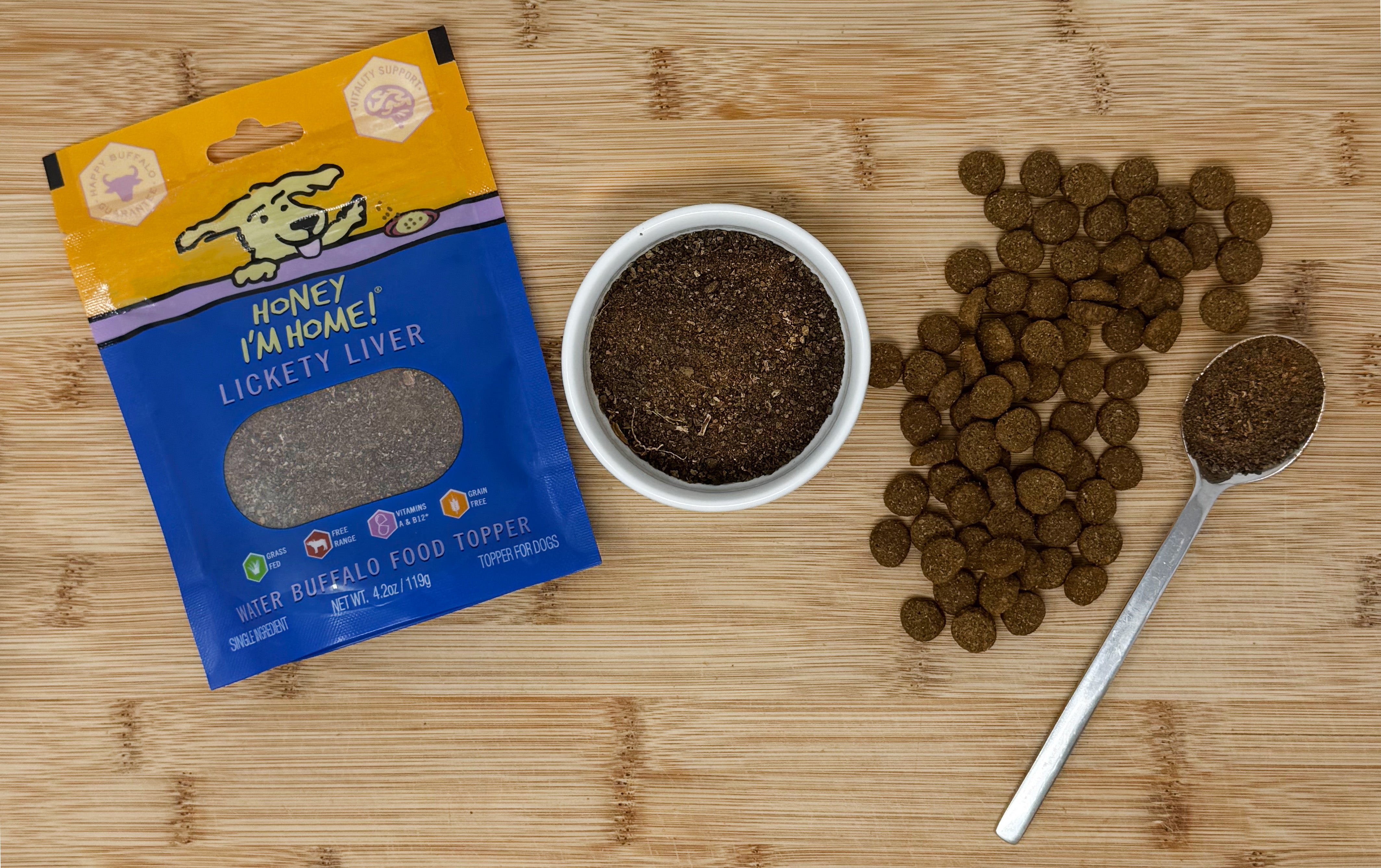 Turn up the taste and nutrition with our Lickety Liver Meal Topper made from 100% dried and ground water buffalo liver for a savory, protein-rich boost...