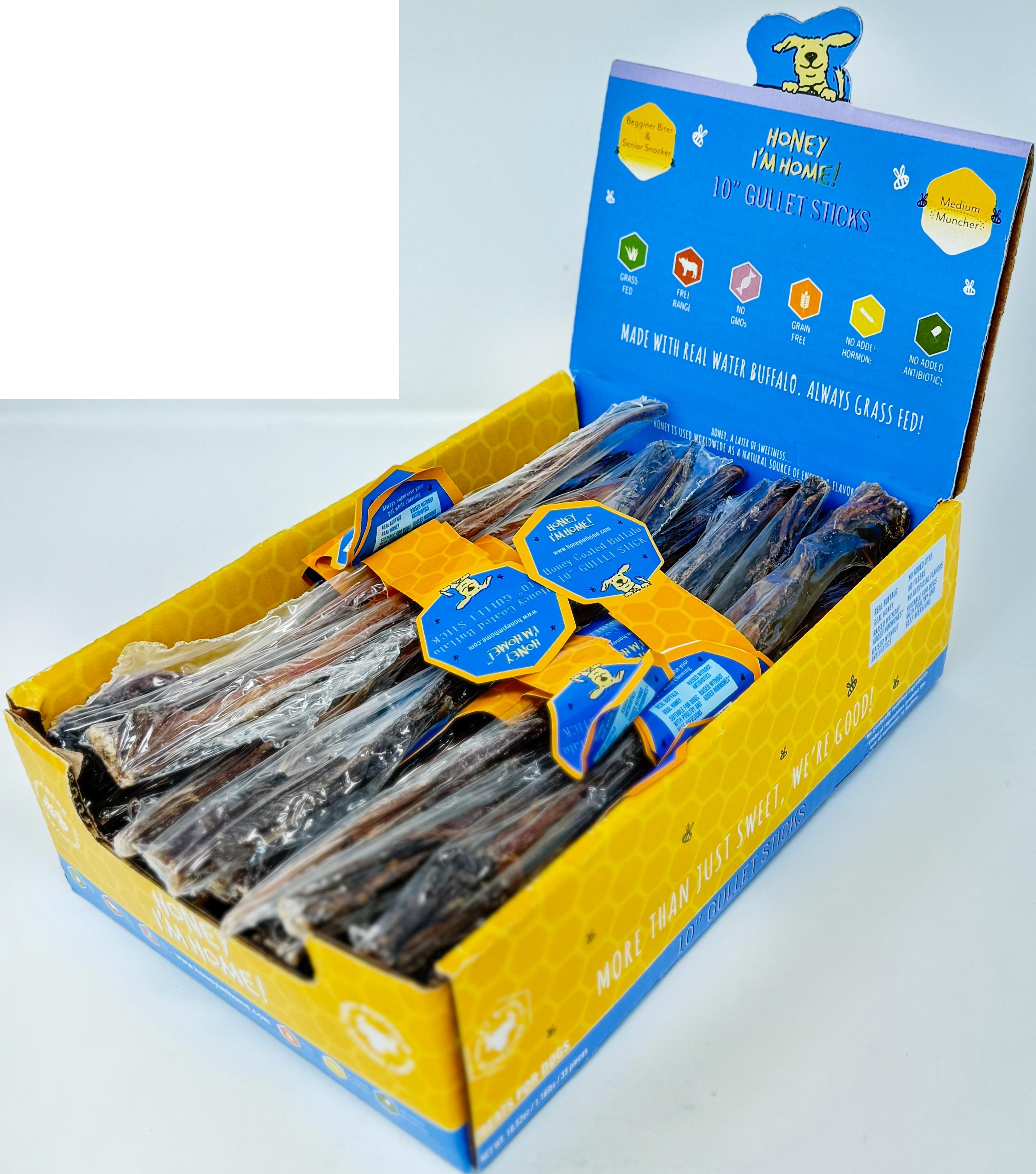 Chewy, savory, and made to please our Honey I’m Home 10" Water Buffalo Gullet Sticks are a natural win for your dog’s chew routine. These chews are made...