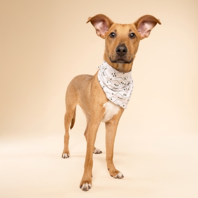 Let your pup embrace the spirit of adventure with Roam—a dog bandana inspired by peaceful forest strolls and tiny trees dotting the landscape.