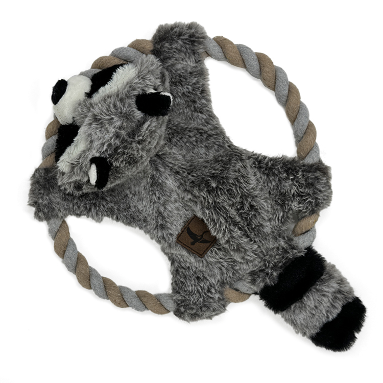 Eddie Bauer 10" Rope Toy with Plush Raccoon in Gray and White is perfect for dogs who crave variety in playtime. Featuring a .75-inch-thick circular taupe...