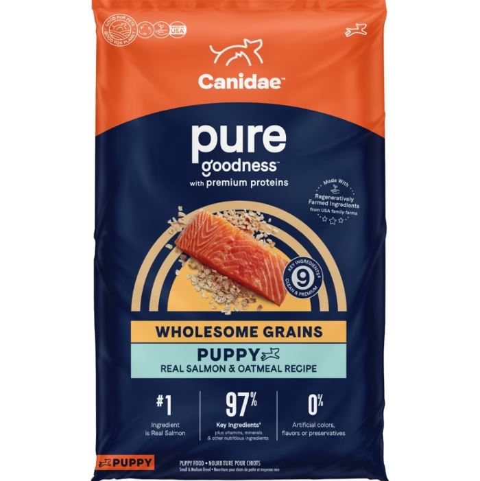 Canidae PURE with Grains features clean recipes and premium proteins crafted with your dog's health and well-being in mind. High in animal protein, the first ingredient in this limited ingredient dog food is always real meat, fish or poultry, paired with wholesome grains. Discover just some of the reasons why Canidae PURE is one of the best dog foods for puppies: