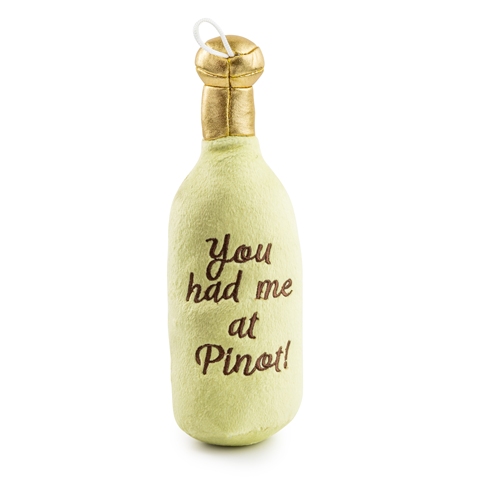 Sophisticated pups, rejoice! Our Santa Muttgarita Pino Grrrigio is back with a fresh new label and even more charm. This fan-favorite parody of a classic wine now features crackle and squeak for extra playtime appeal, all wrapped in soft, 100% plush polyester. Perfect for the pup who appreciates the finer things in life—no corkscrew required.