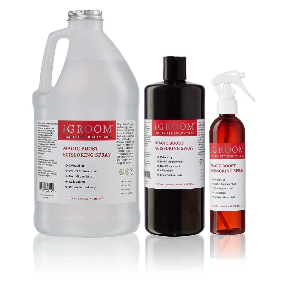 iGroom Magic Boost Scissoring Spray adds volume and control for wet or dry styling. Lightweight, humidity-resistant formula speeds drying without buildup....
