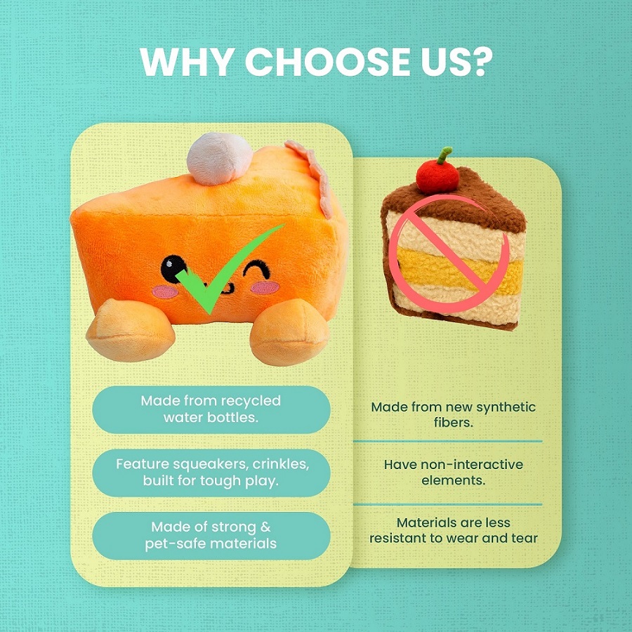 With hidden squeakers inside and a soft-yet-durable build, this toy is ideal for playful pups who love to chew, toss, and snuggle. Whether your pup is celebrating Halloween, Thanksgiving, or just embracing cozy fall vibes, this pumpkin pie toy is a must-have!