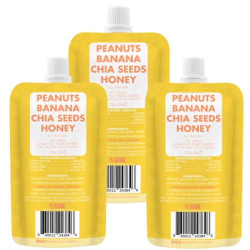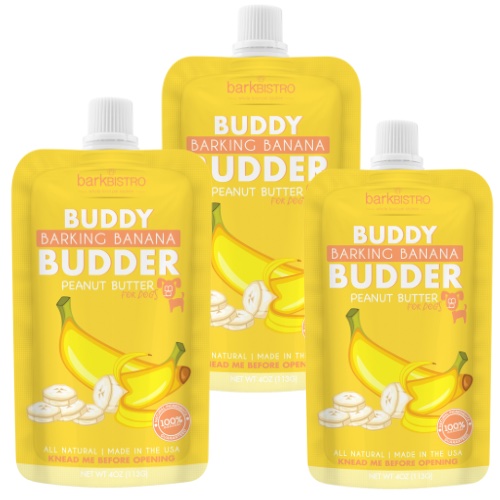 4oz Barkin Banana Buddy Budder Squeeze Packs- 100% Natural Dog Peanut Butter