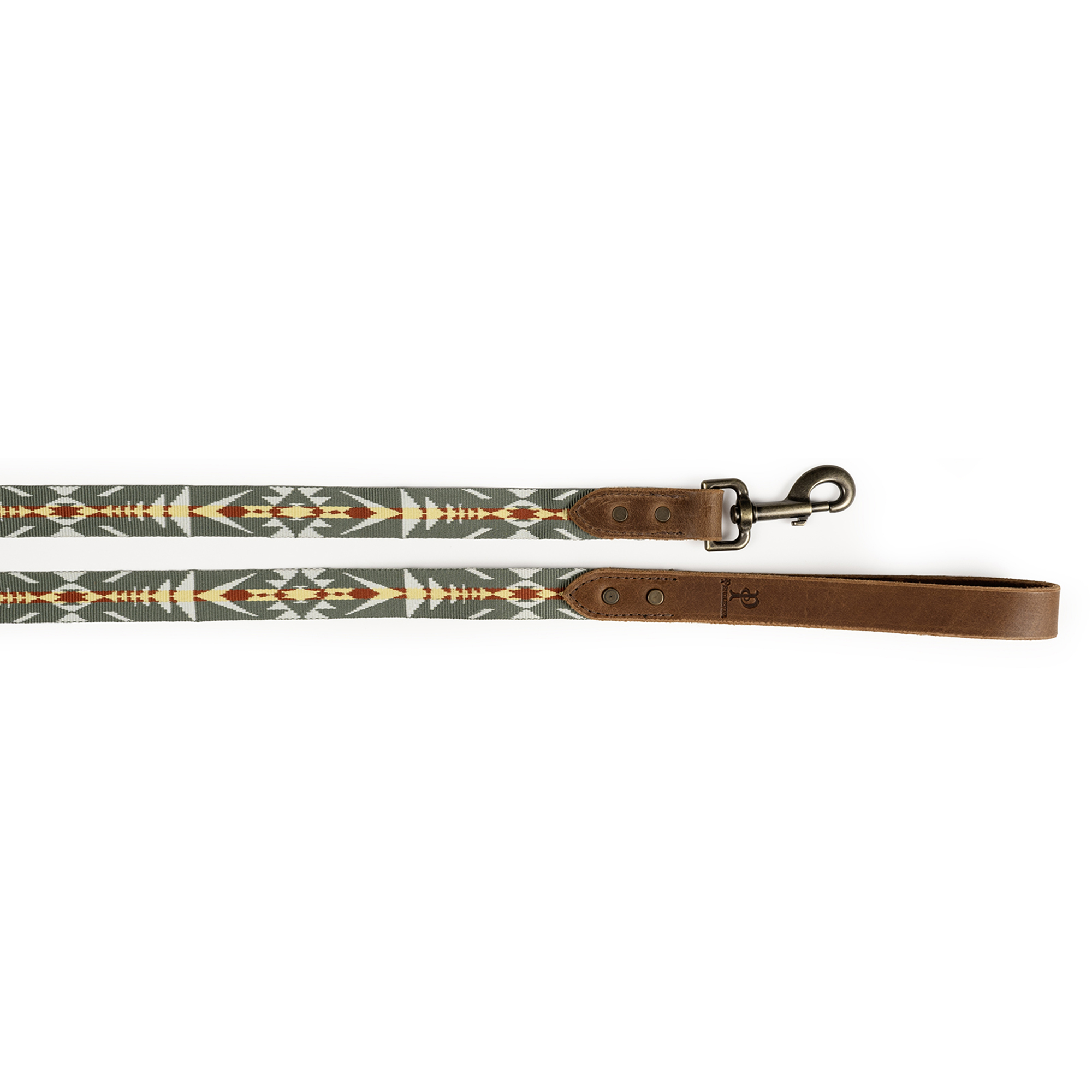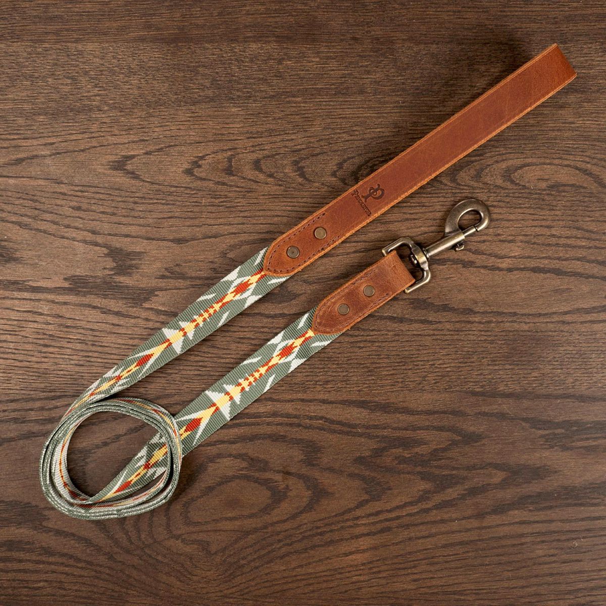 At the heart of the design is a sturdy water buffalo leather handle that not only offers a comfortable, secure grip but also features an embossed Pendleton logo for an added touch of authenticity and craftsmanship. Finished with solid metal hardware in an antique brass tone and a swivel clasp for smooth, tangle-free movement, this leash is built for adventure and made to last.