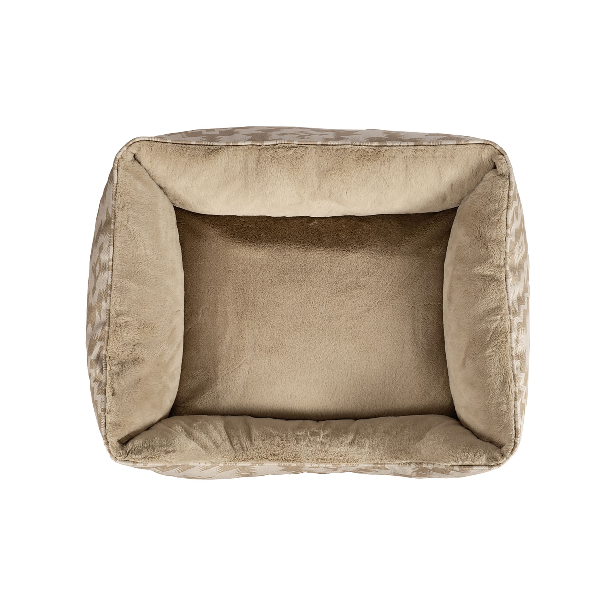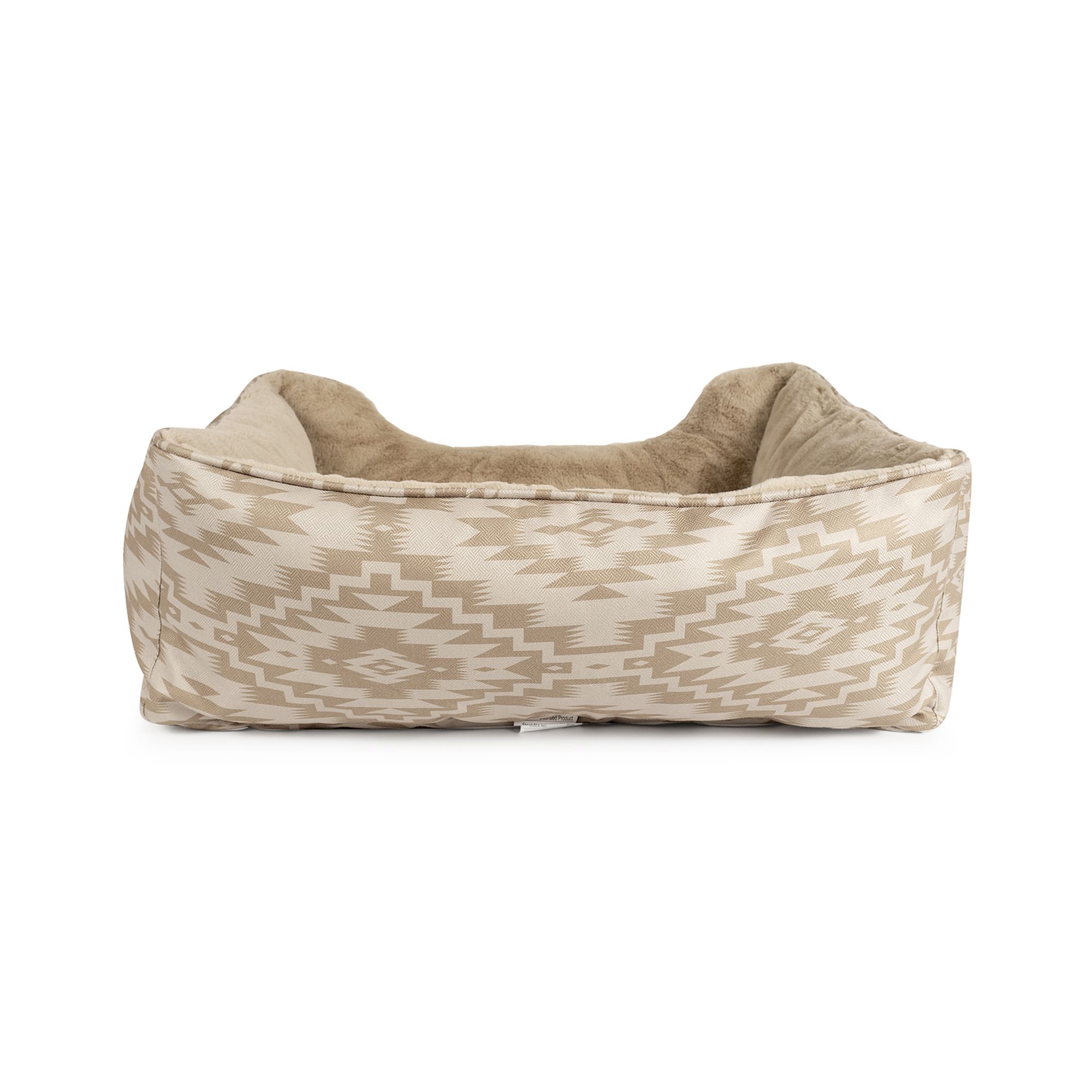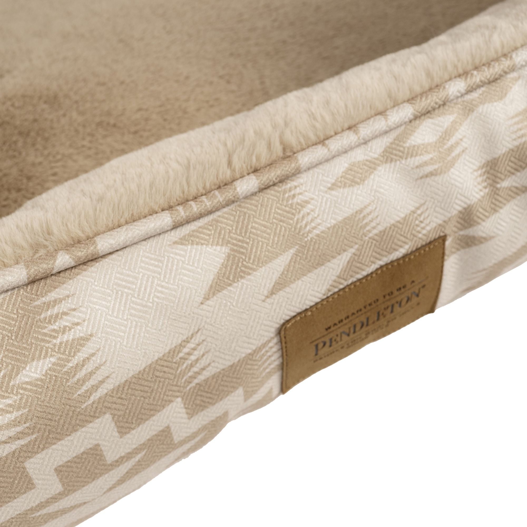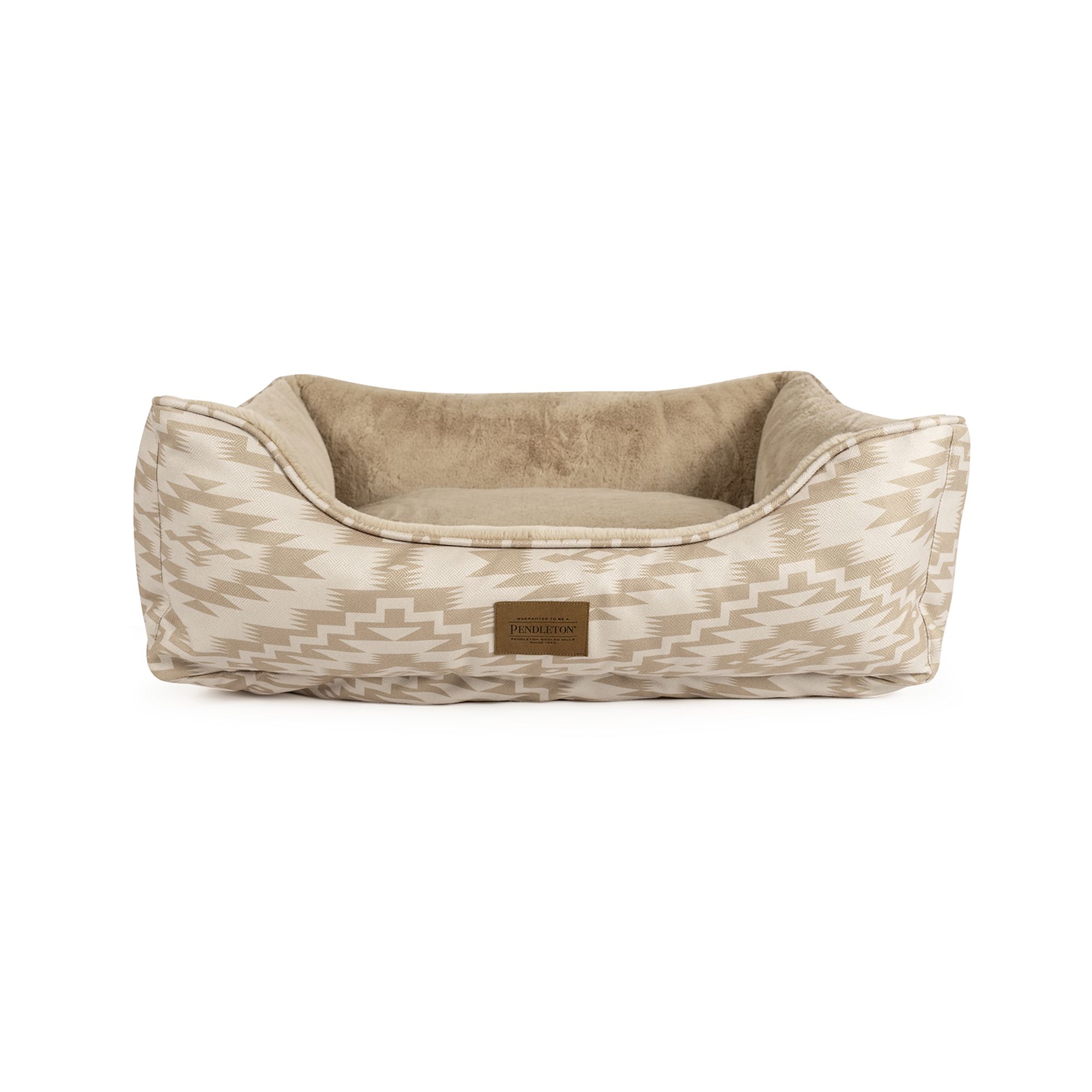 This bed is made for pets who love to lounge in plush, supportive comfort. The durable, textured polyester exterior features timeless Pendleton patterns—adding a stylish accent to your home décor—while the luxuriously soft faux fur sleep surface invites pets to curl up and relax. Four generously filled bolsters create a supportive nest-like shape, perfect for leaning, lounging, and restful naps. Filled with 100% recycled hi-loft polyester and finished with a removable, machine washable cover, this bed is both beautiful and practical. Available in three sizes to suit a range of breeds and sleeping styles