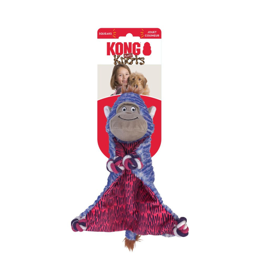 KONG Floppy Knots Flatz’s flat, wide body makes the flopping even more fun, satisfying natural instincts with a sturdy, internal knotted rope skeleton. This knotty pal has stuffing only in his head. The squeaker calls dogs to play and keeps the joyful thrashing action going and going!