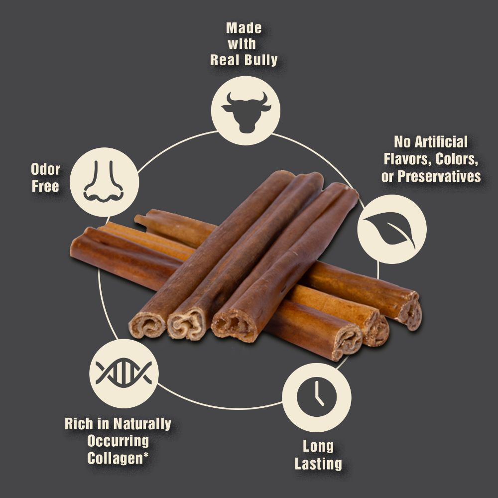 Made with 100% Real Bully: Canine Naturals Beef & Bully Sticks are made from carefully sourced grass-fed, free-range cattle, making them collagen rich and a healthy chew for your dog.