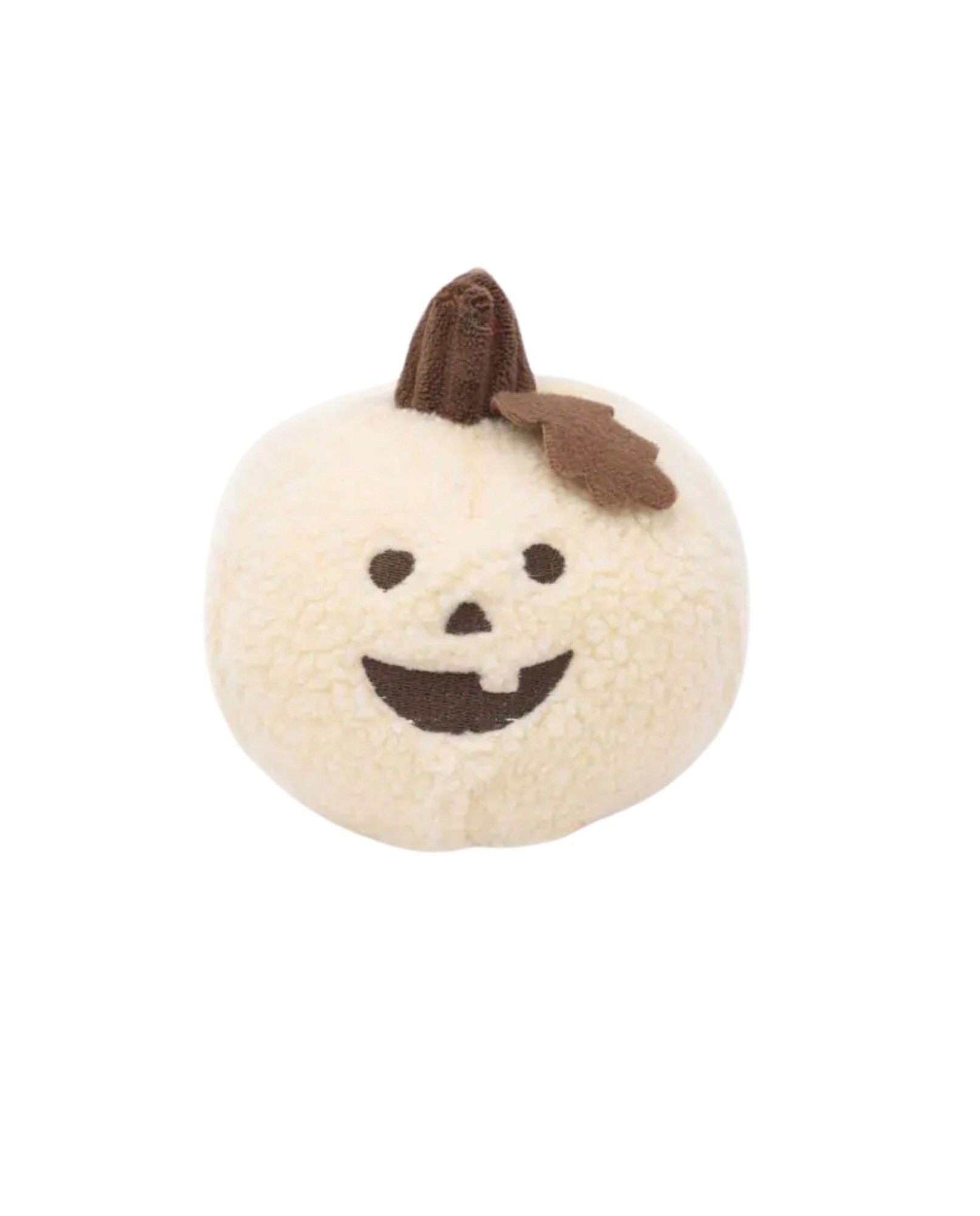 The Jumbo Fleece Pumpkin features a fuzzy fleece exterior with a classic Jack-o’-lantern face, stem, and attached leaf. Filled with soft stuffing and crinkly material and features a medium Blaster squeaker.