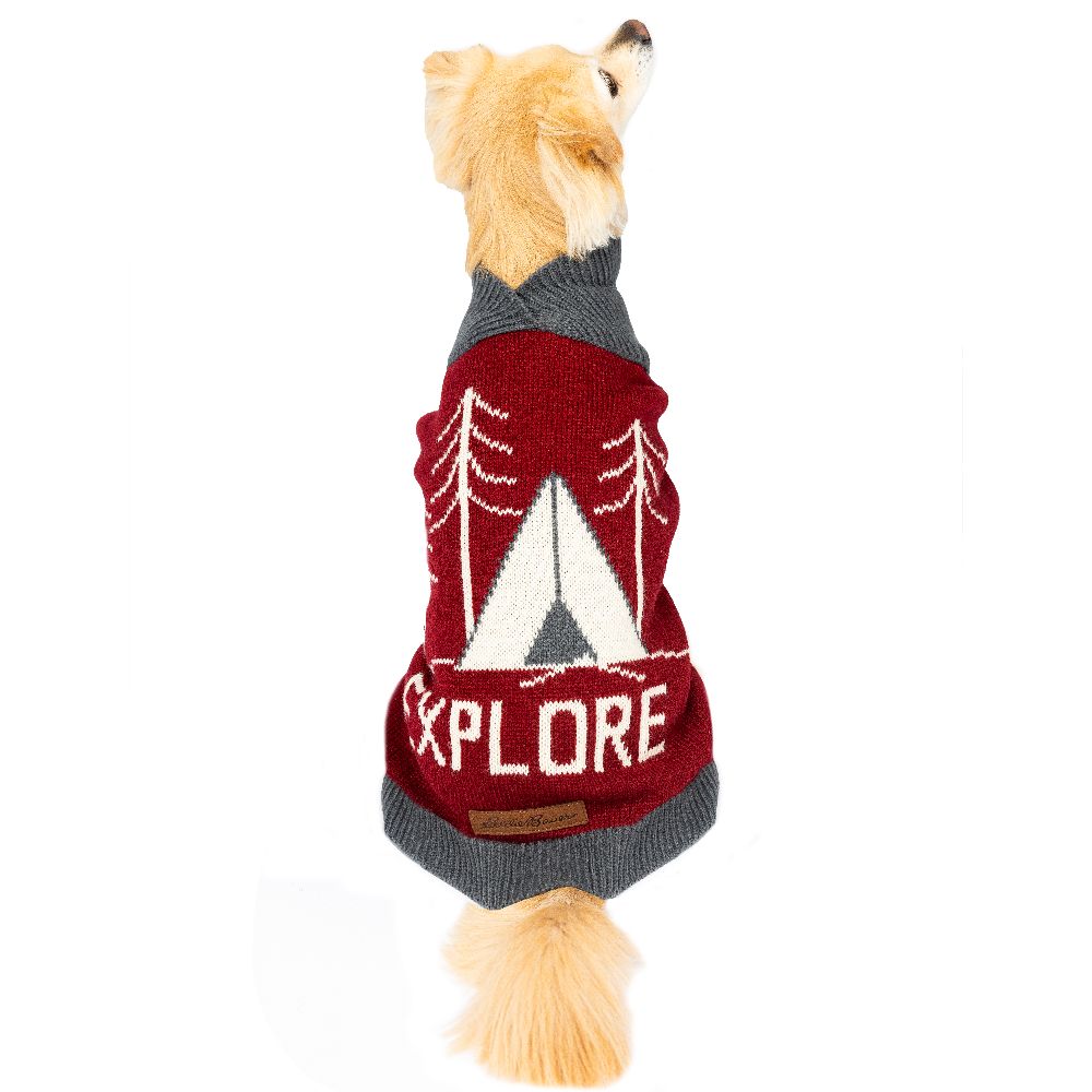 The Explore Shawl Collar Sweater keeps pets warm with a soft acrylic knit and stylish collar. The woven "Explore" motif celebrates adventure. Perfect for outdoor walks or cozy lounging. Red, S-XL