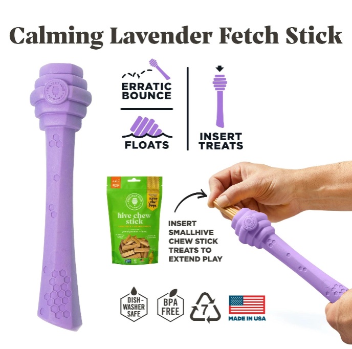 This lavender-scented Hive Fetch Stick will be your dog’s new favorite toy!
