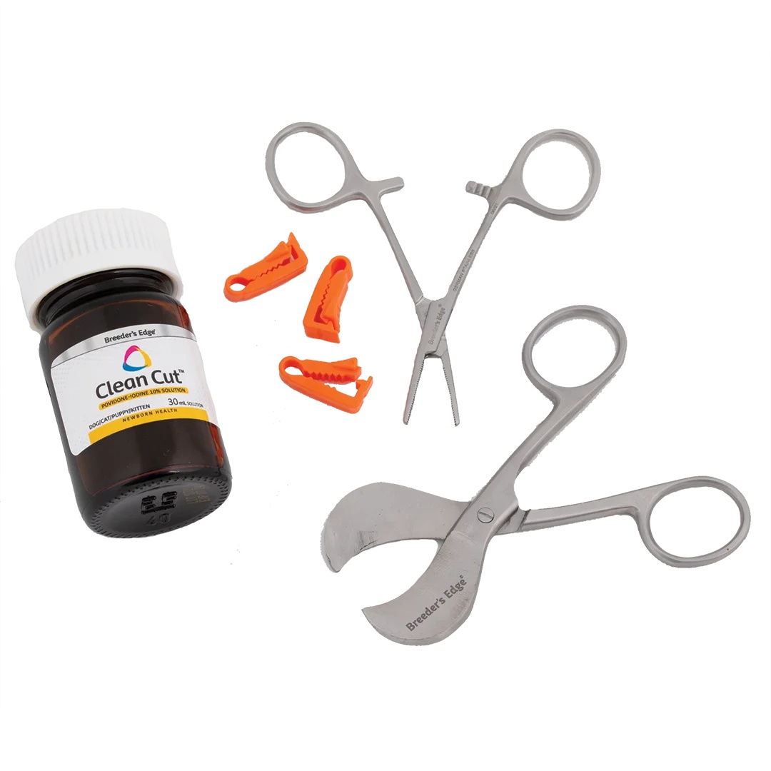 Breeder's Edge Clean Cut Family Kit for newborn puppies and kittens provide everything need for safe, professional umbilical cord care in one complete kit.
