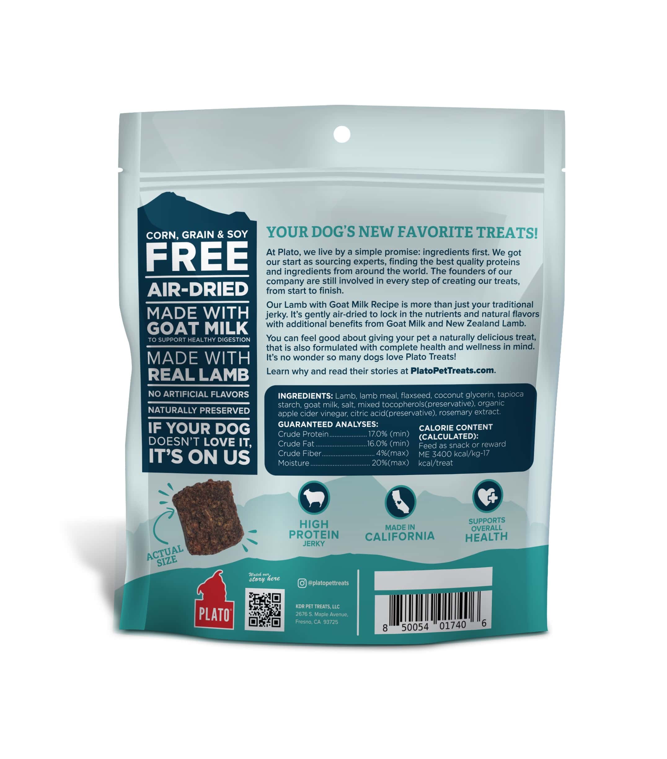 High-protein Lamb with Goat Milk Recipe is made with New Zealand Lamb and Goat Milk to support your dog’s over health. These treats are gently air-dried to lock in the nutrients and natural flavors with additional benefits from Lamb, Goat Milk and flaxseed.