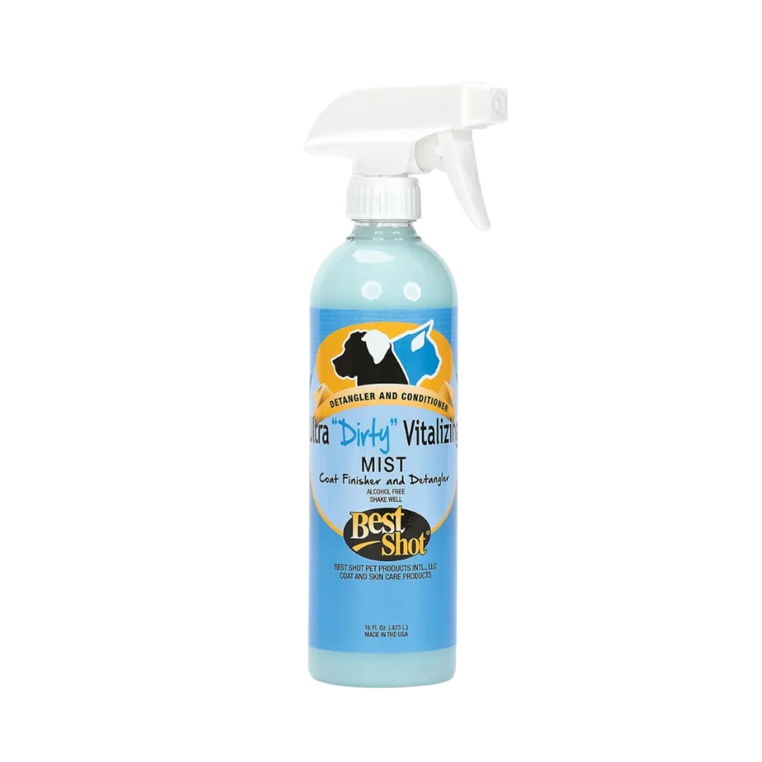 Best Shot Ultra Vitalizing Mist is a leave-in conditioning spray designed to hydrate, shine, and detangle dogs’ coats while supporting the 3-Step Grooming System