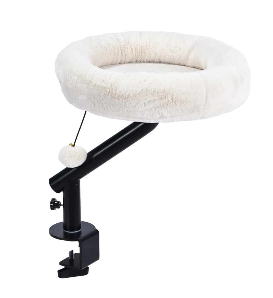 This cat tree is designed to keep your feline friend close by while you work, ensuring both you and your cat enjoy a harmonious environment. The top features a plush - lined, circular bed, providing a cozy spot for your cat to lounge and relax. Hanging ball adds an element of fun, keeping them entertained. The sturdy black arm and secure desk - mounting mechanism ensure stability, allowing your cat to safely perch. it suitable for various desk setups without taking up too much space. It combines innovation, functionality, and style. It's the perfect way to keep your cat content and close while you focus on your tasks.