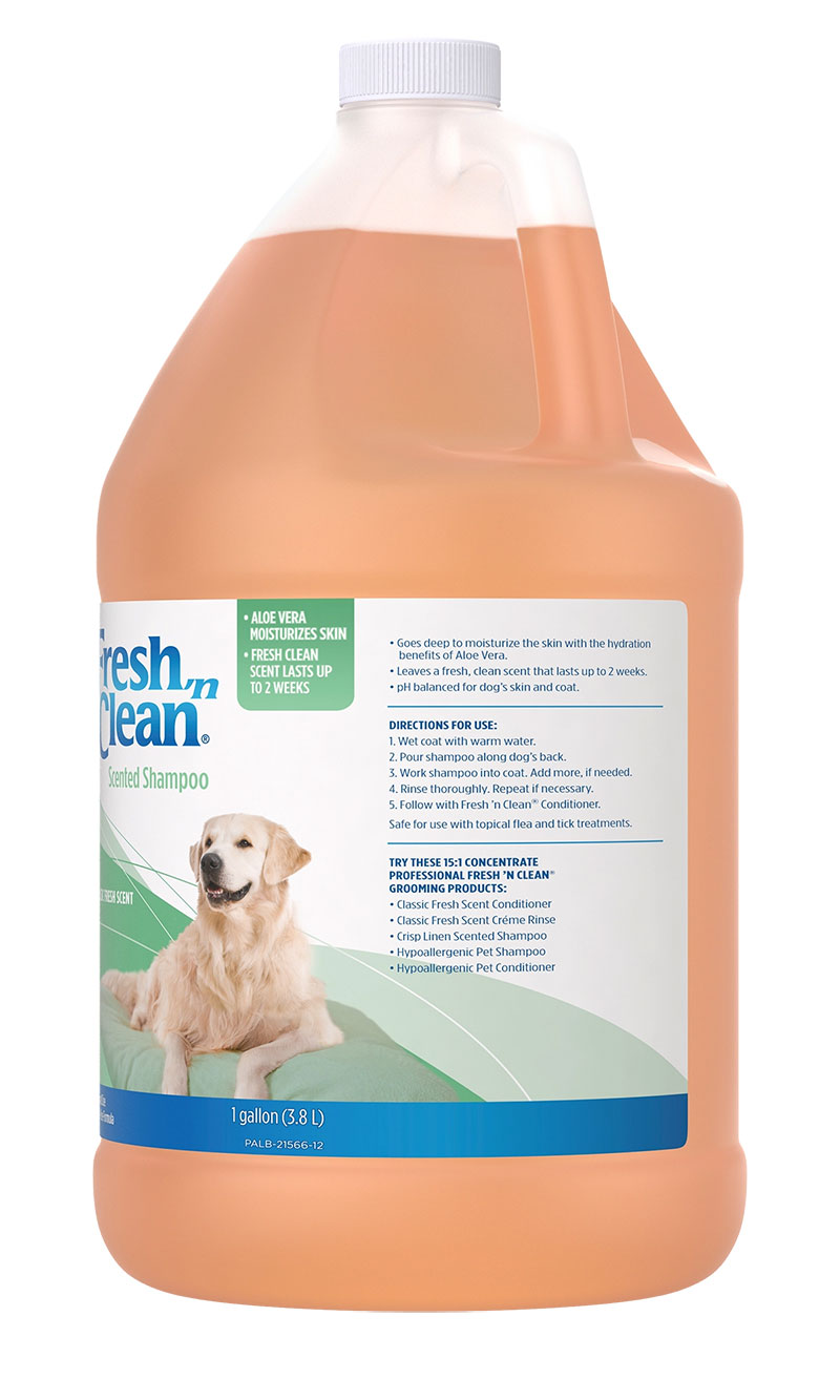 Crisp Linen Scented Shampoo helps soothe dry, irritated skin while moisturizing with Vitamin E and Aloe Vera. Wheat protein strengthens repairs and protects the dog’s coat. Crisp Linen Scented Shampoo keeps the dog smelling Fresh 'n Clean® longer with a scent that can last up to two weeks!