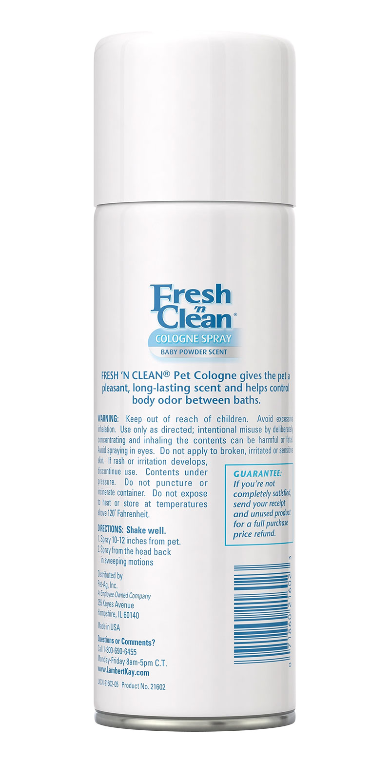 Keep pets smelling fresh between baths or trips to the groomers with Fresh ’n Clean Cologne Spray. No water, lathering or mess. Just spray the gentle, ready-to-use formula from nose-to-tail for instant freshness.