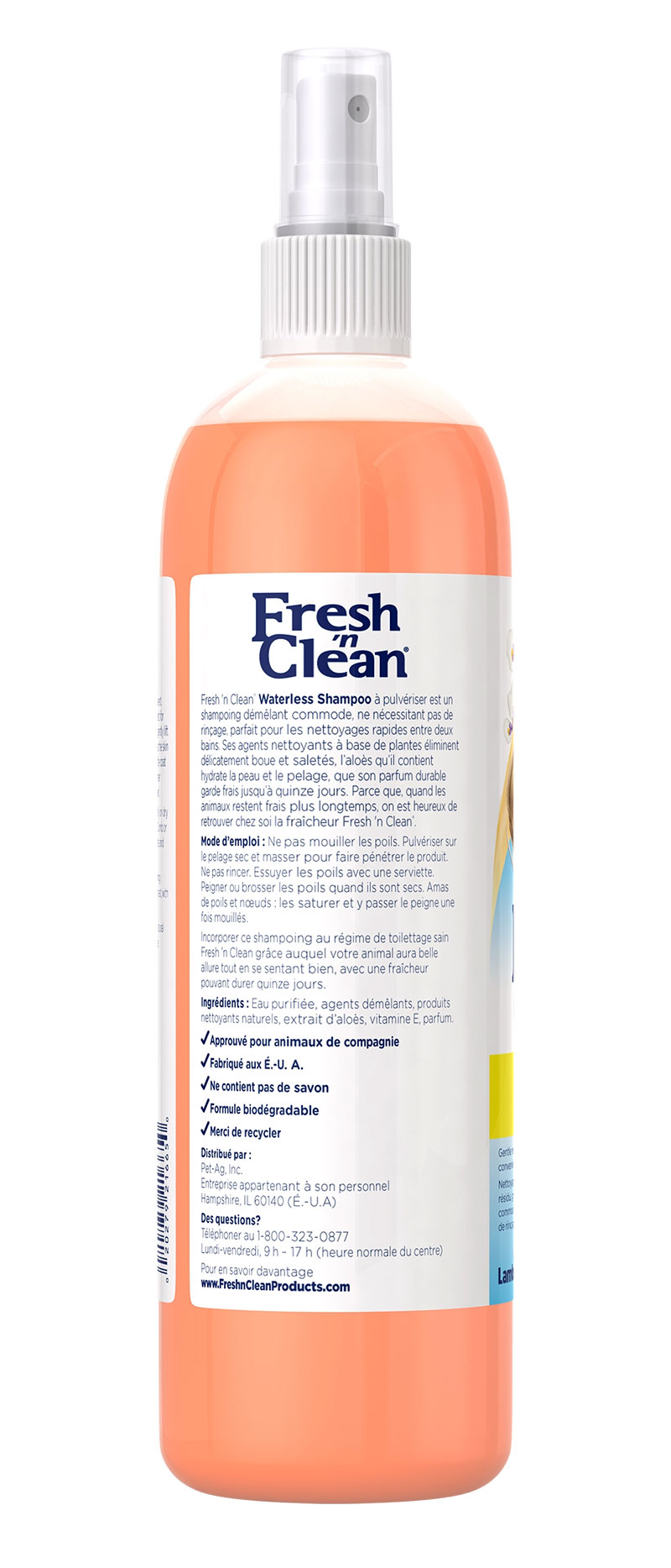 Give your dog a quick, rinse-free cleanup between baths with Fresh ’n Clean® Waterless Shampoo. The soap-free formula uses natural plant-based cleansing agents to gently lift away dirt and grime from your pet’s skin and coat without the need for water. Made with skin-soothing Aloe vera extract, it also works to release mats and tangles. It’s the perfect solution to keep your pet clean when you’re away from home. The Fresh ’n Clean signature, long-lasting scent keeps your dog smelling fresh up to two weeks.
