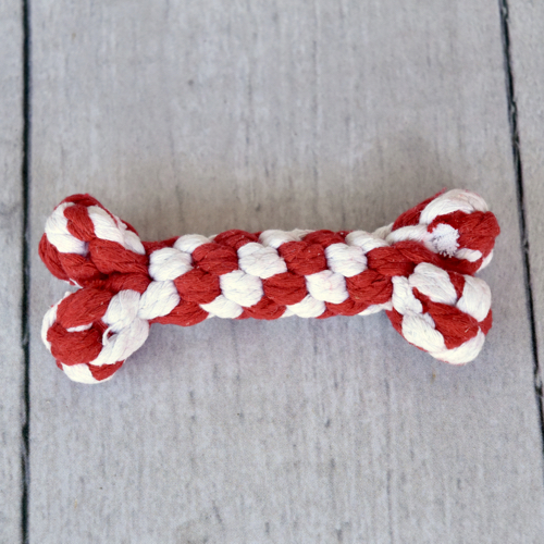 This wonderful rope is the newest addition to the Bella Bean Family of goods. These rope toys are wonderful for the avid chewer and great to play fetch with. As the rope unravels over time, we recommend retying to see what new shape your animal will become! Safe non-toxic dyes are used and this item is made in China. 7 in X 2 1/2
